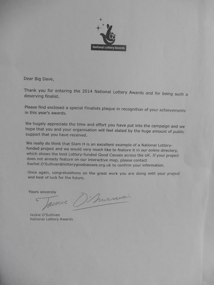 Presented to Dave by the then Home Secretary David Blunkett at the Globe Theatre